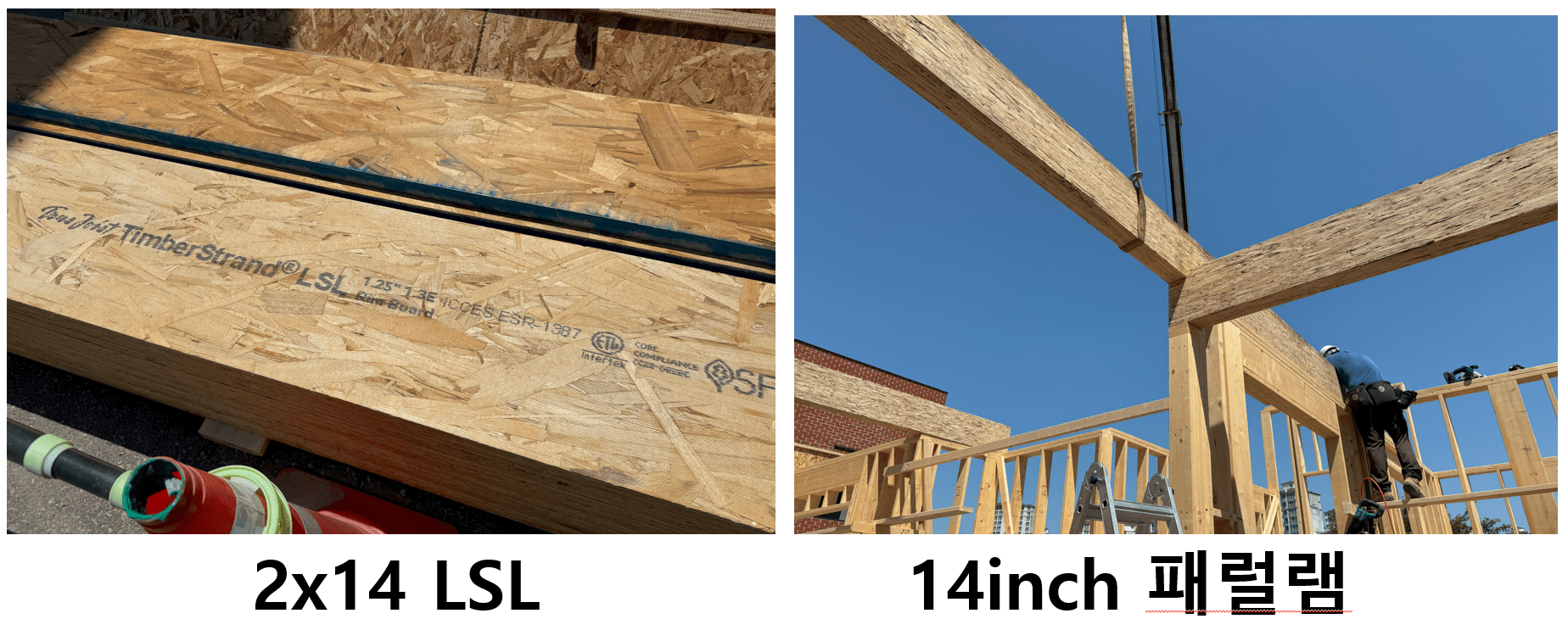 그런데, Zero30Haus의 1층은 벽체가 거의 없는 대부분 오픈된 구조이고, 내력벽이 없는 가장 짧은 span이 6m, 긴 스팬이 13m에 달하기에 일반적인 목조주택용 자재로는 불가능하다는 결론.