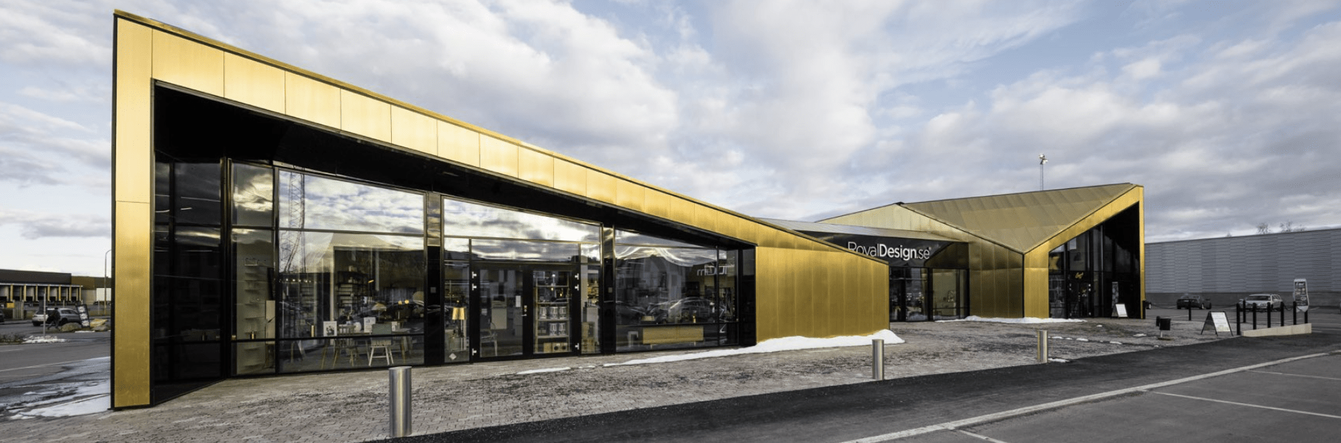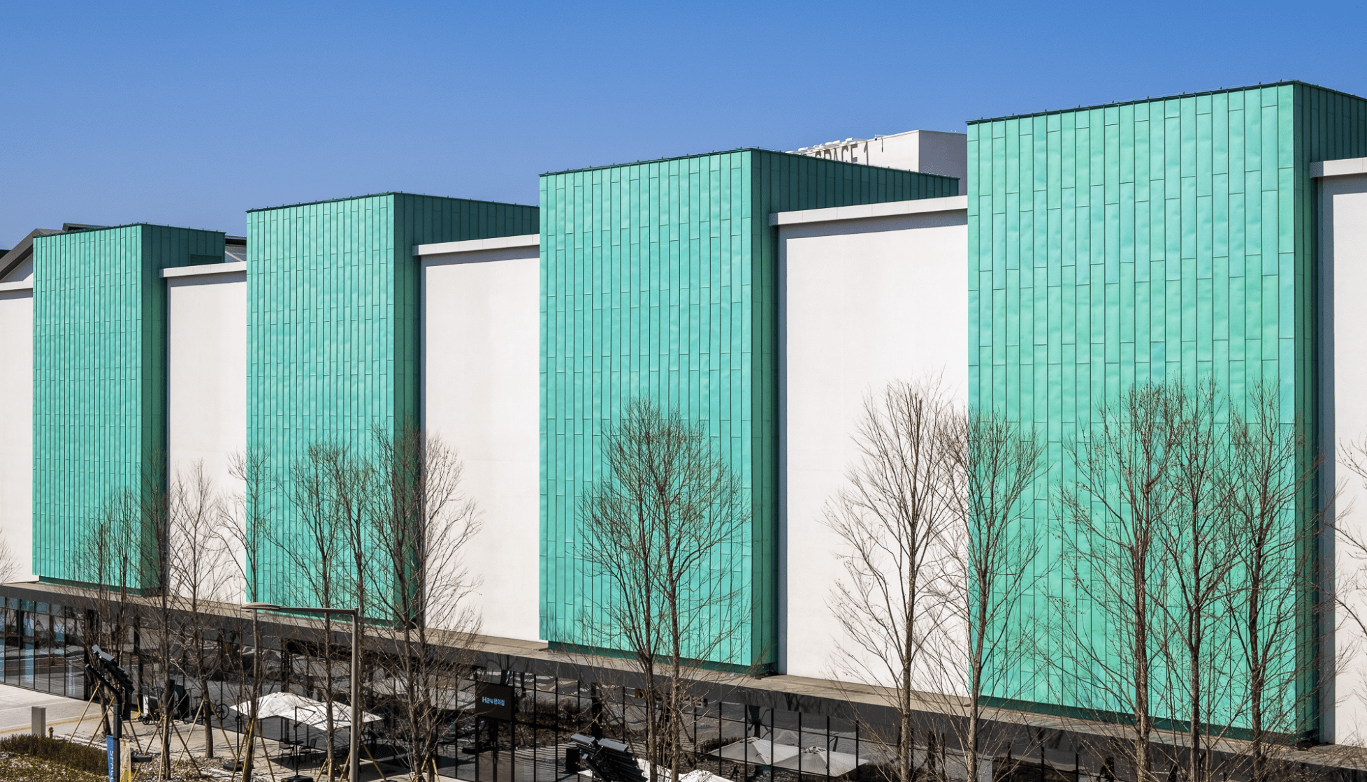 PVDF칼라강판을 적절히 절곡하여 강도를 확보하고 통기성이 확보되는 하지각관에 시공하는 방식. 높은 내구성과 경량성, 불연성 등 외장재로의 장점이 많아 요즘 현대적 건축물에 많이 사용되고 있는 것 같습니다.