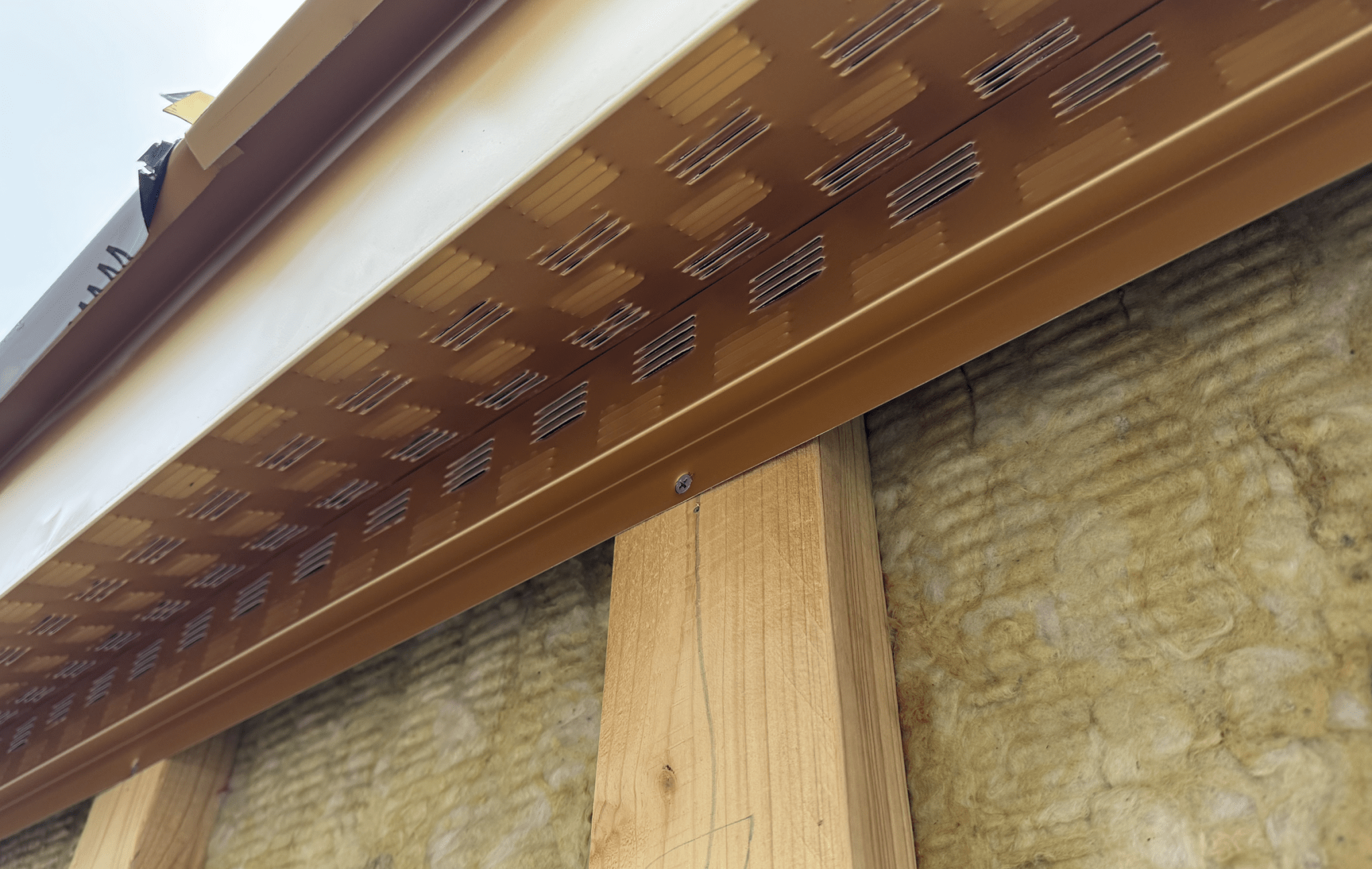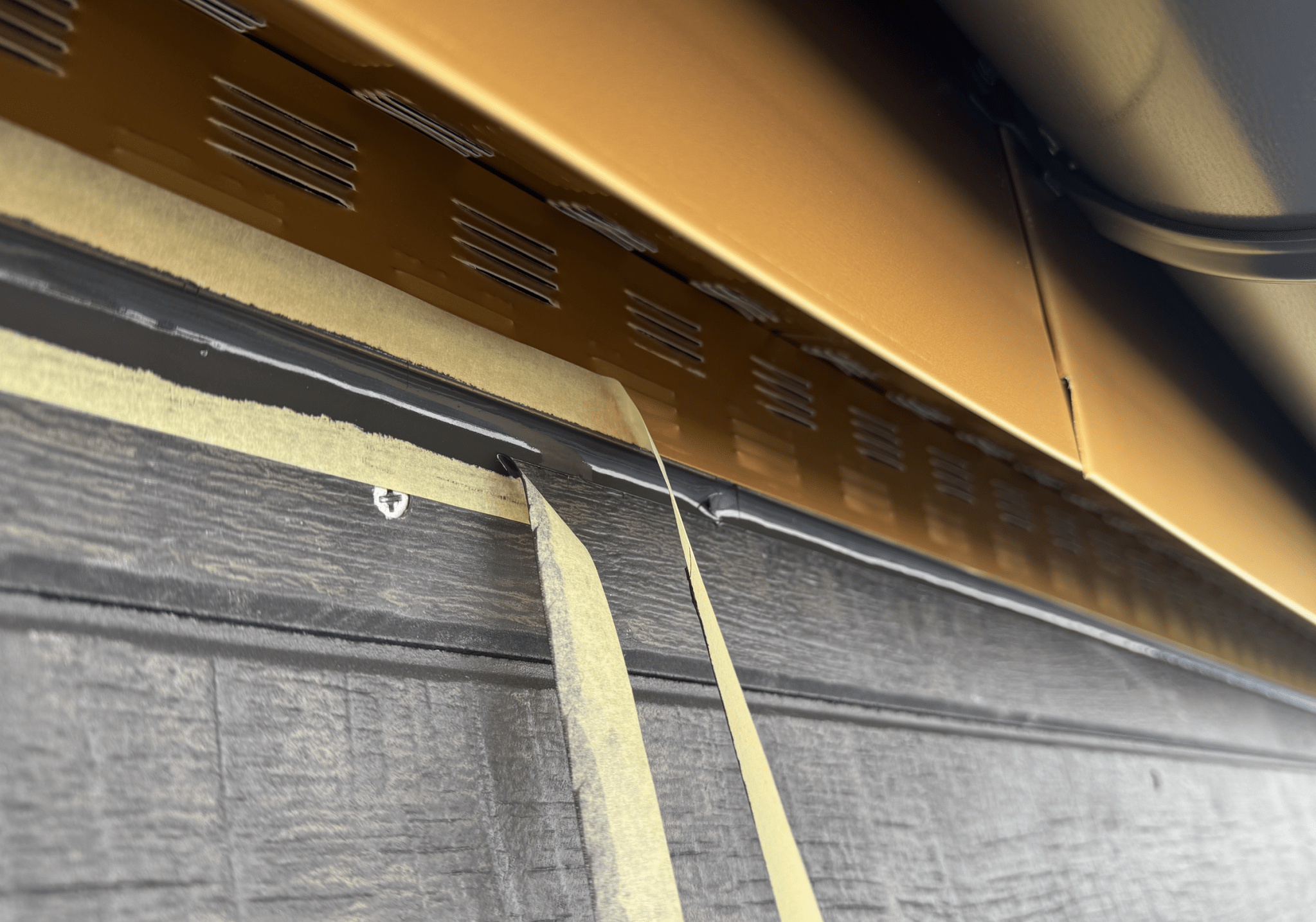 실리콘 조인트 코킹이 필요없는 외장재이지만, 절단면, 재료분리라인 등에는 어쩔 수 없이 실리콘 코킹이 되어야 했습니다. 최대한 UV노출이 적은 방향으로 100% 실리콘 코킹. (100% 실리콘 재질이 가장 내후성 우수)